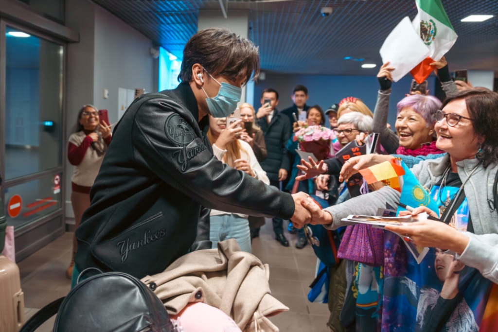 Comme toujours, les fans de Dimash l’ont chaleureusement accueilli à l’aéroport et lui ont offert un instrument de musique traditionnel letton, le kokle.