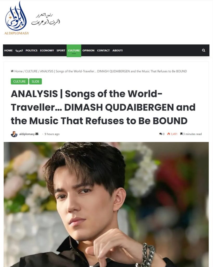 Aldiplomasy, un portail d’information égyptien couvrant l’actualité internationale — notamment la diplomatie et l’Organisation de la coopération islamique — et publiant des articles sur les initiatives culturelles et artistiques mondiales, a publié un article analytique sur l’œuvre de Dimash Qudaibergen.